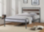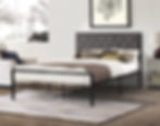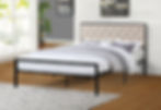 Full Metal Bed with Grey Fabric Upholstered Headboard - 853